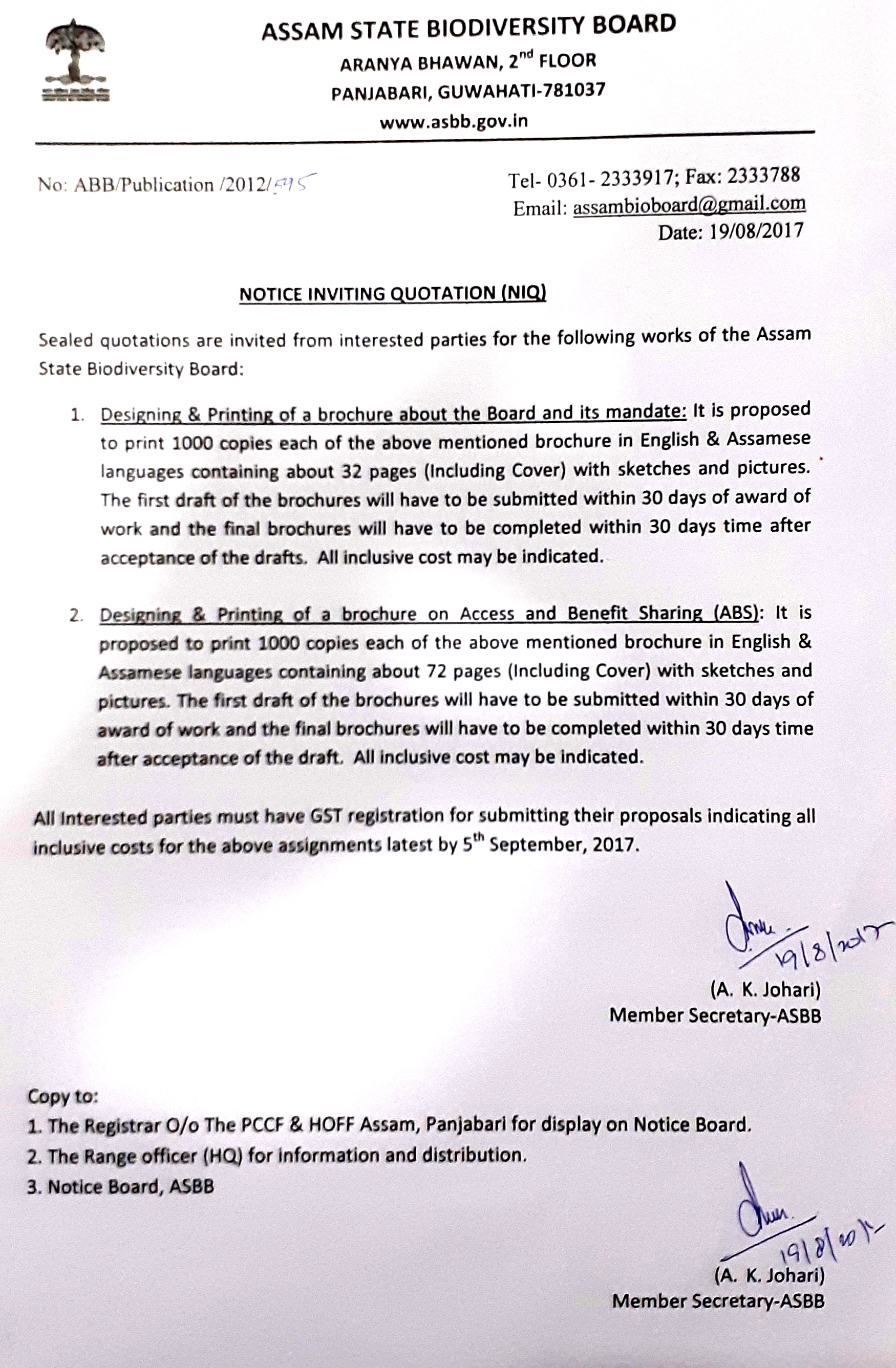 NIQ_Designing & Printing of brochure about the Board's mandate and Access and & Benefit Sharing (ABS)- August 2017