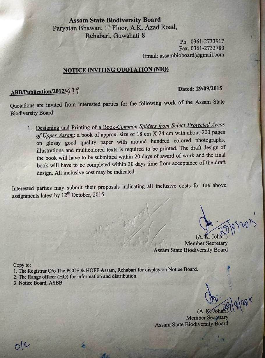 NIQ_Printing and designing of book_Common Spiers of Selected Protected Areas of Upper Assam -September 2015